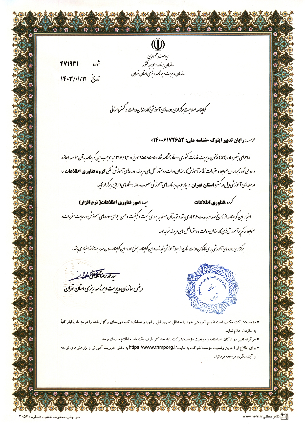 دکتر آرش قشمی ۱۲ ساعت حاکمیت فاوا ( اصول، چارچوب و استقرار ) حیطه فناوری اطلاعات تومان ۱۲۰,۰۰۰ تومان ۴۰,۰۰۰ ثبت نام ٪۶۷